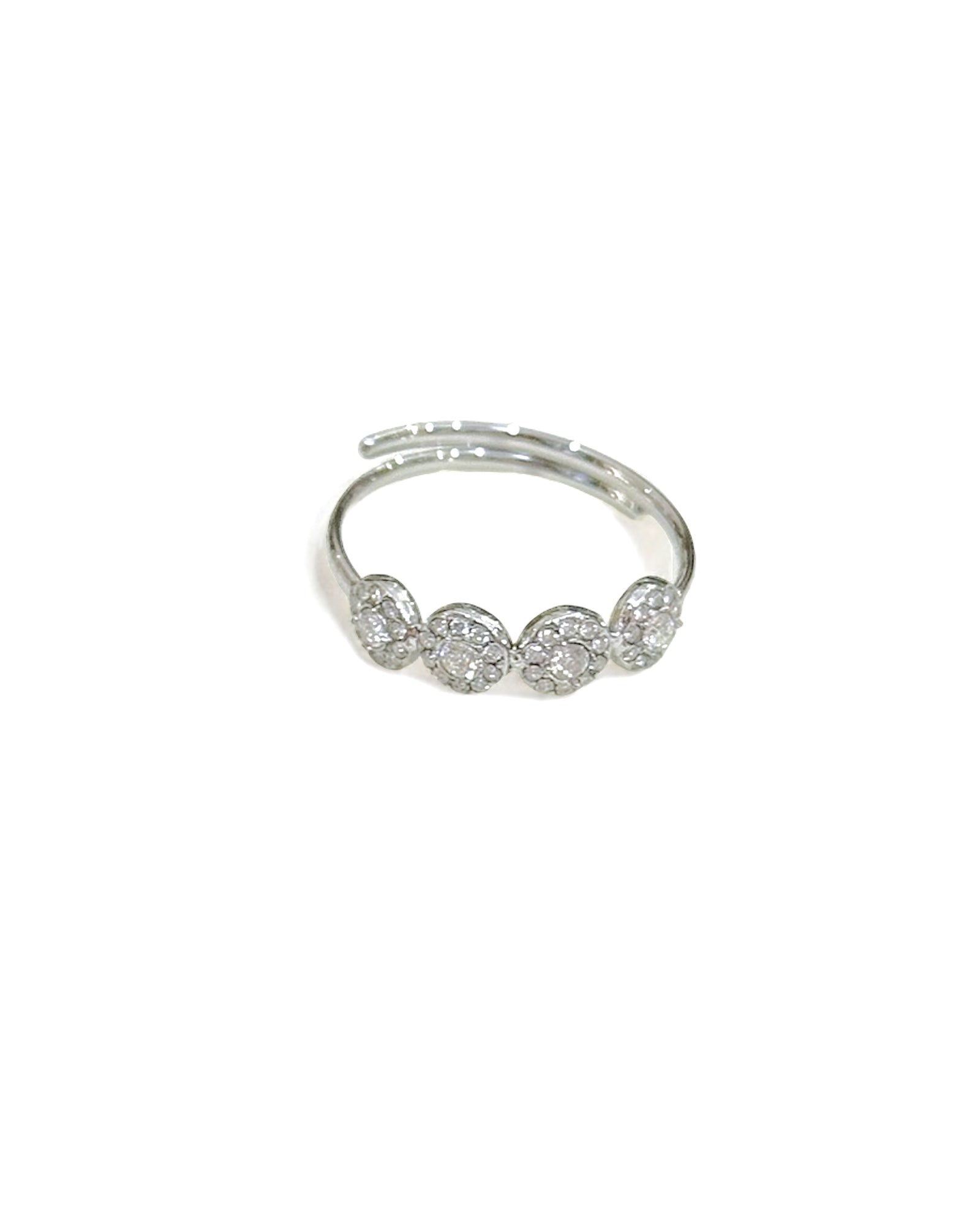- Design: anello regolabile con zirconi bianchi